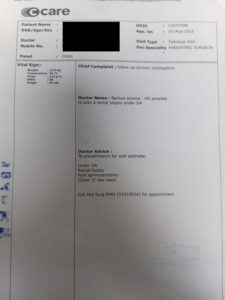 Angelica, 3 ans, souffre de constipation chronique. Son traitement coûtera financièrement Rs 87 766 .